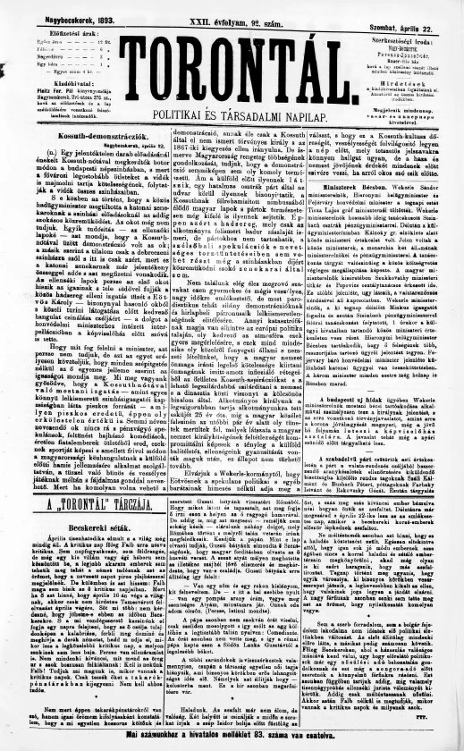 Torontál, 22. évf. 1893. április 22. 92. sz.