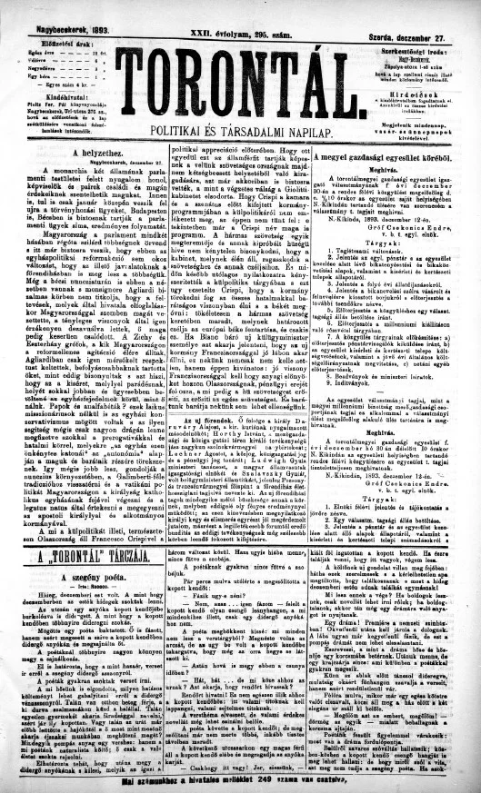 Torontál, 22. évf. 1893. december 27. 295. sz.