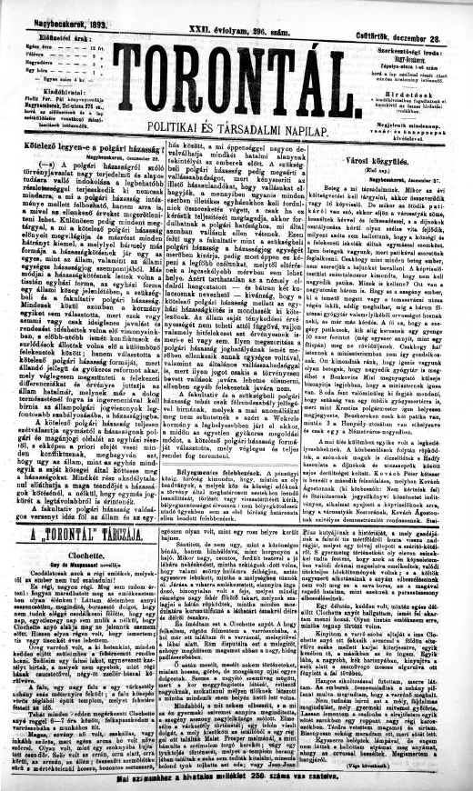 Torontál, 22. évf. 1893. december 28. 296. sz.