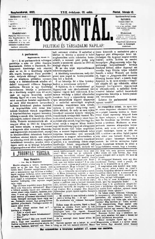 Torontál, 22. évf. 1893. február 10. 33. sz.