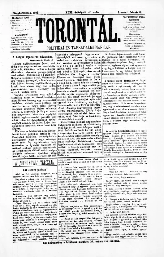 Torontál, 22. évf. 1893. február 18. 40. sz.