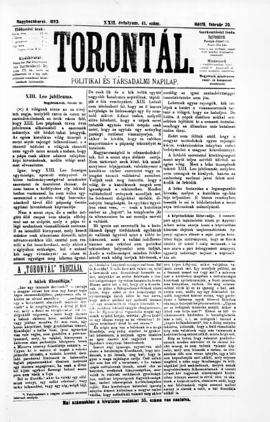 Torontál, 22. évf. 1893. február 20. 41. sz.