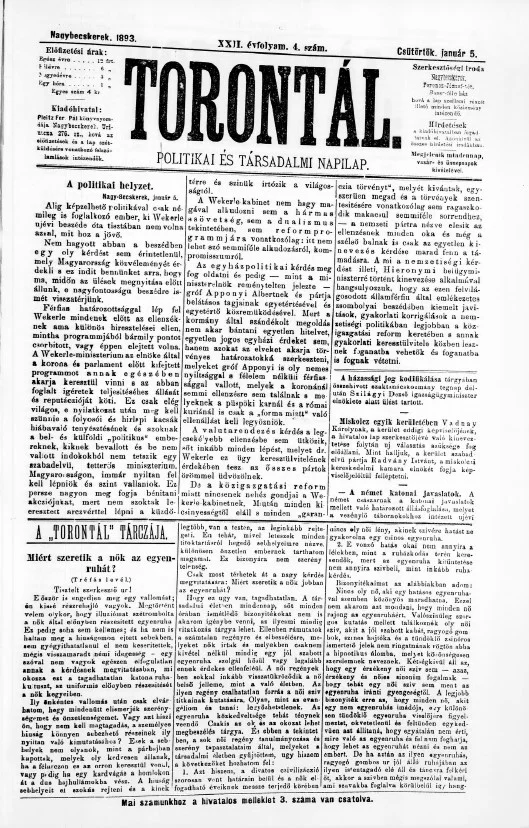 Torontál, 22. évf. 1893. január 5. 4. sz.