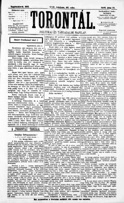 Torontál, 22. évf. 1893. július 24. 167. sz.