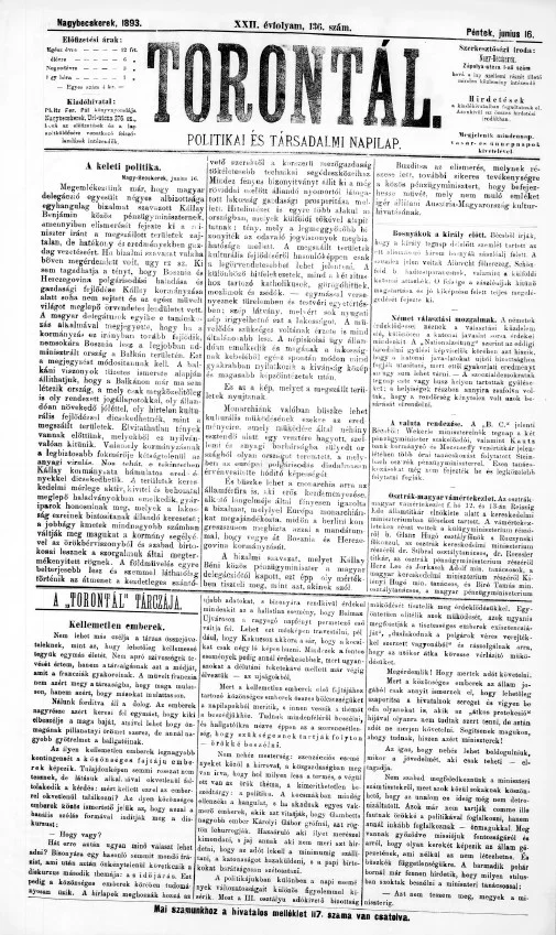 Torontál, 22. évf. 1893. június 16. 136. sz.