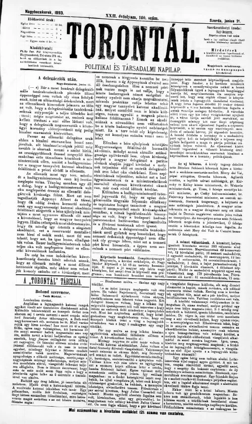 Torontál, 22. évf. 1893. június 21. 140. sz.