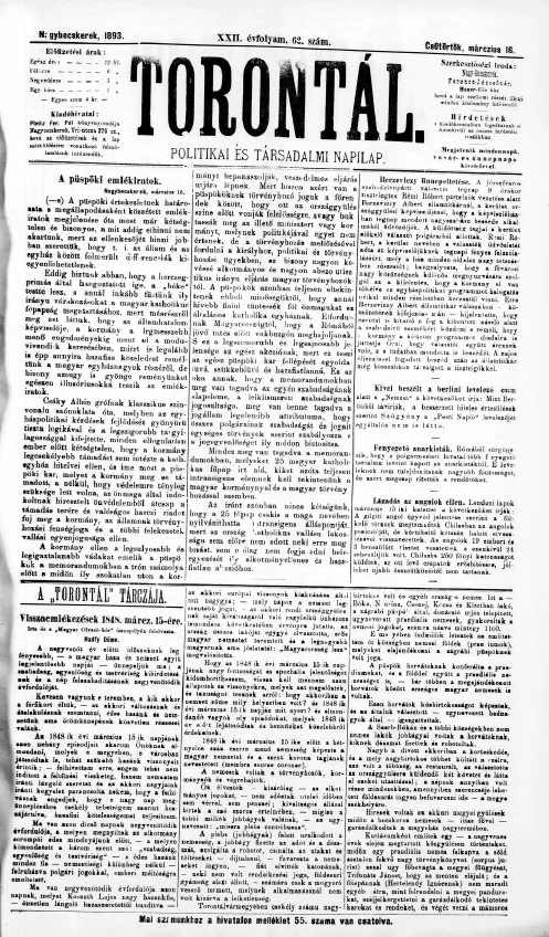 Torontál, 22. évf. 1893. március 16. 62. sz.