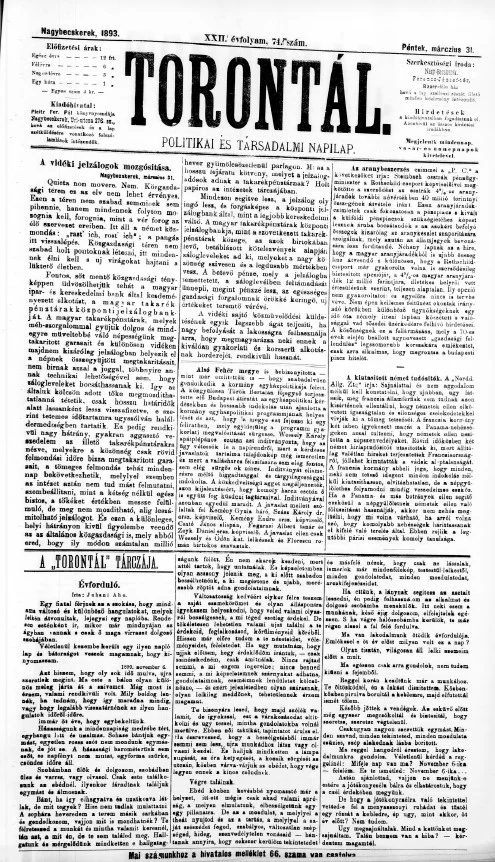 Torontál, 22. évf. 1893. március 31. 74. sz.