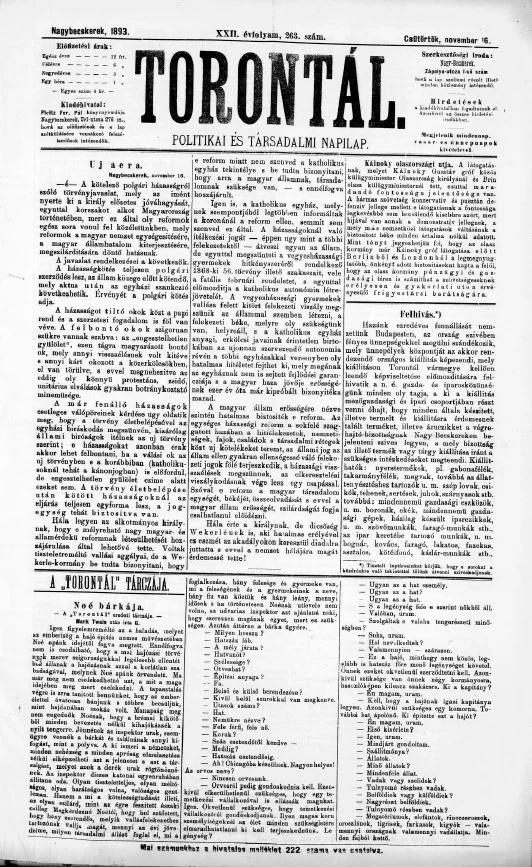 Torontál, 22. évf. 1893. november 16. 263. sz.