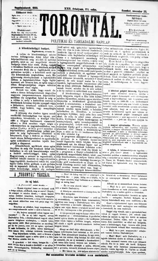 Torontál, 22. évf. 1893. november 25. 271. sz.
