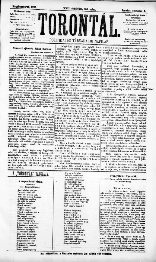 Torontál, 22. évf. 1893. november 4. 253. sz.