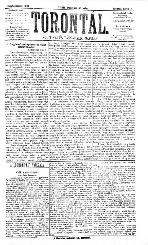 Torontál, 23. évf. 1894. április 7. 80. sz.