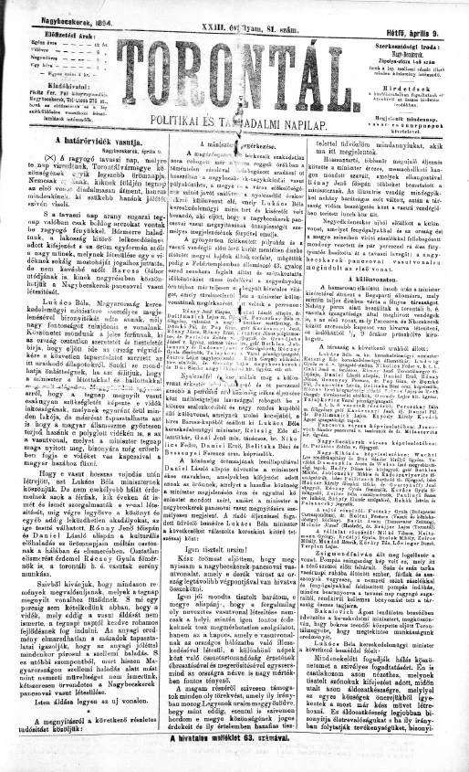 Torontál, 23. évf. 1894. április 9. 81. sz.