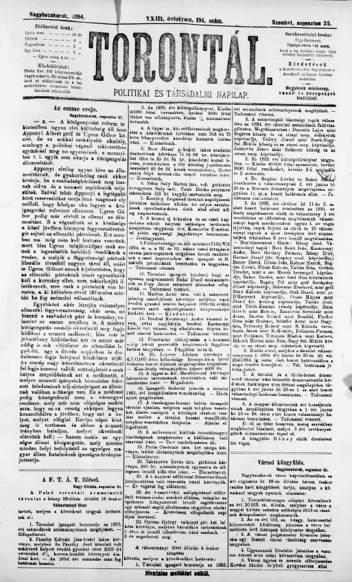 Torontál, 23. évf. 1894. augusztus 25. 194. sz.