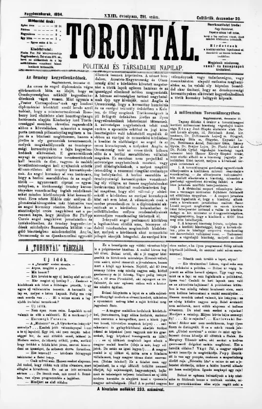 Torontál, 23. évf. 1894. december 20. 291. sz.