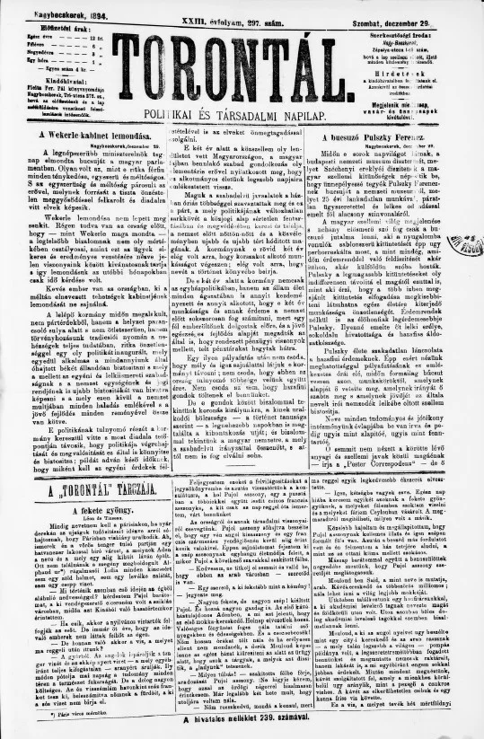 Torontál, 23. évf. 1894. december 29. 297. sz.