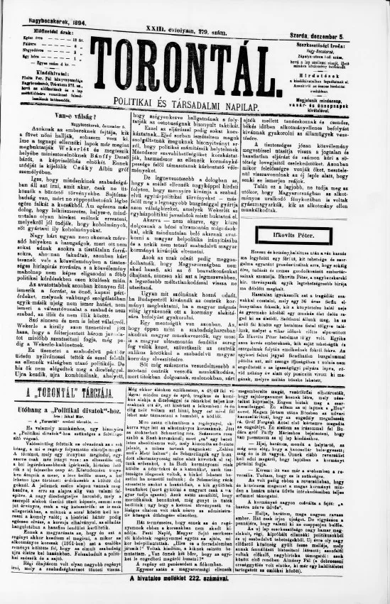 Torontál, 23. évf. 1894. december 5. 279. sz.