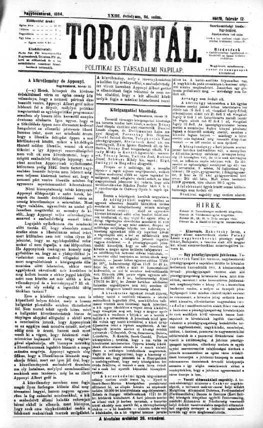 Torontál, 23. évf. 1894. február 12. 34. sz.