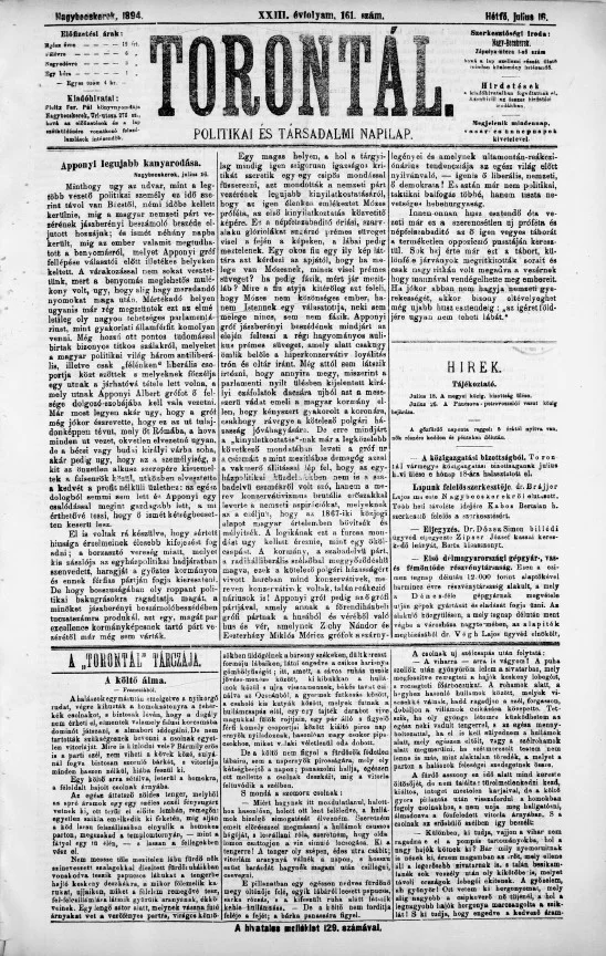 Torontál, 23. évf. 1894. július 16. 161. sz.