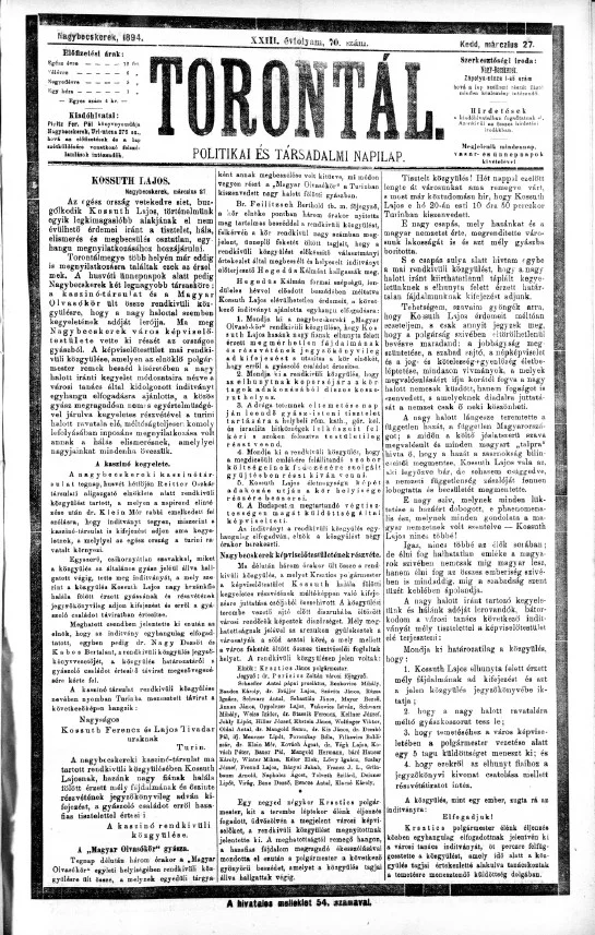 Torontál, 23. évf. 1894. március 27. 70. sz.