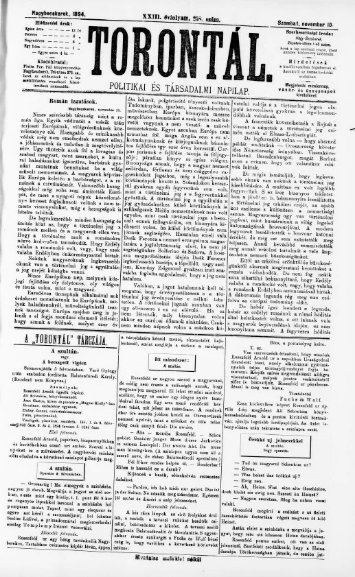Torontál, 23. évf. 1894. november 10. 258. sz.
