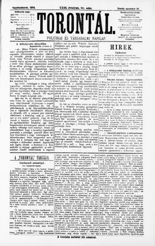 Torontál, 23. évf. 1894. november 14. 261. sz.