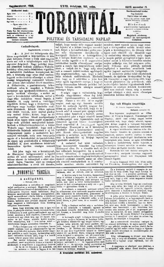 Torontál, 23. évf. 1894. november 19. 265. sz.