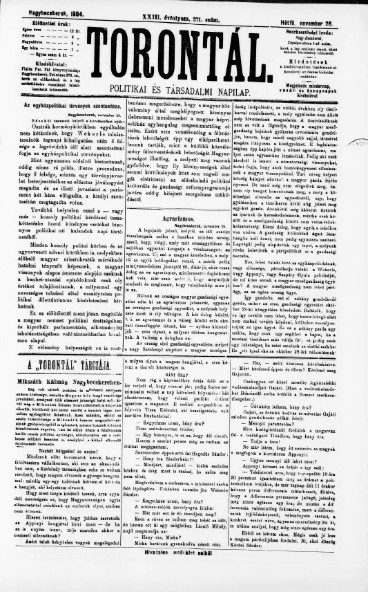 Torontál, 23. évf. 1894. november 26. 271. sz.