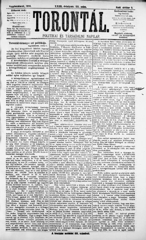 Torontál, 23. évf. 1894. október 9. 231. sz.