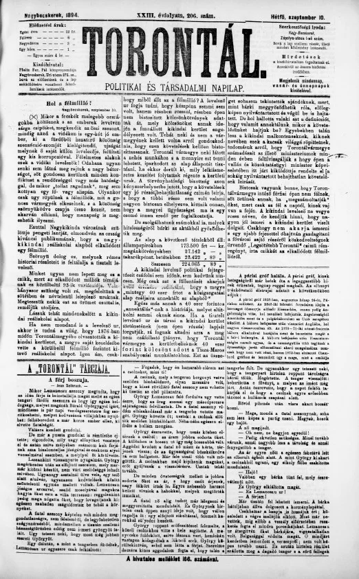 Torontál, 23. évf. 1894. szeptember 10. 206. sz.