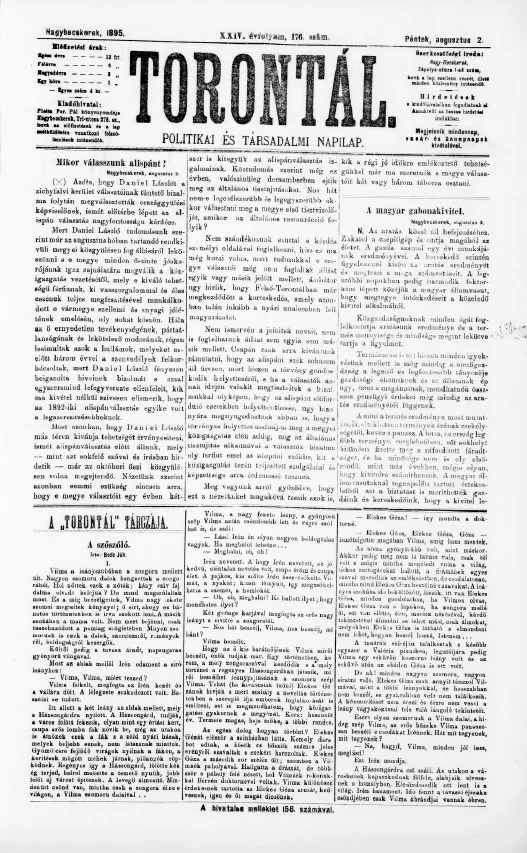 Torontál, 24. évf. 1895. augusztus 2. 176. sz.