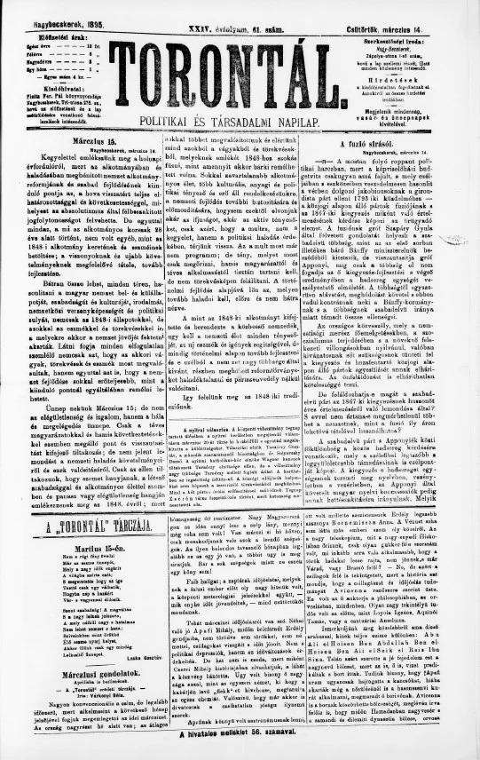 Torontál, 24. évf. 1895. március 14. 61. sz.