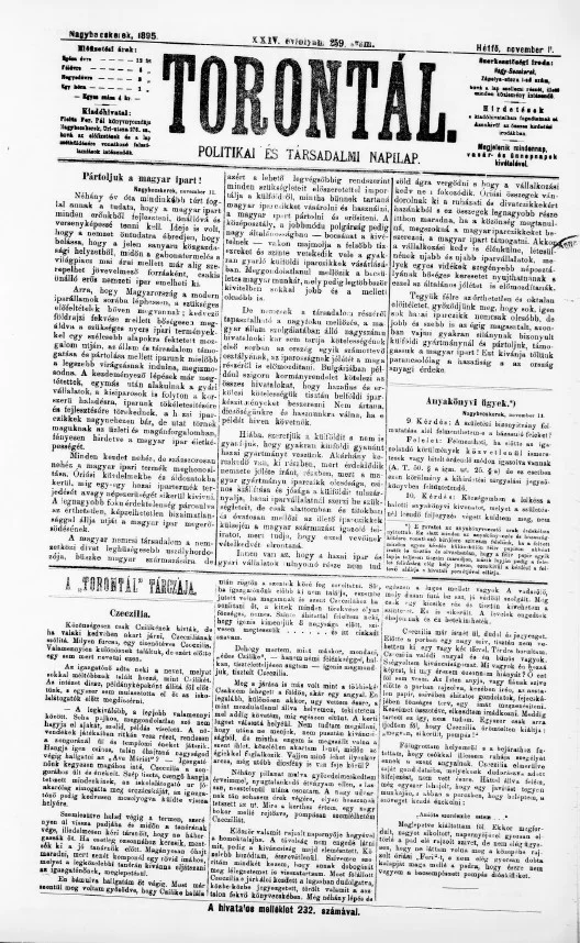 Torontál, 24. évf. 1895. november 11. 259. sz.