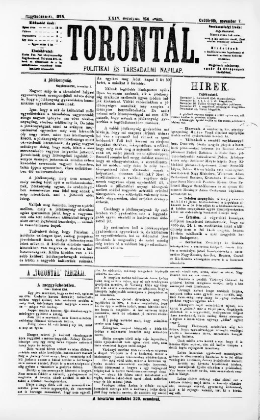 Torontál, 24. évf. 1895. november 7. 256. sz.