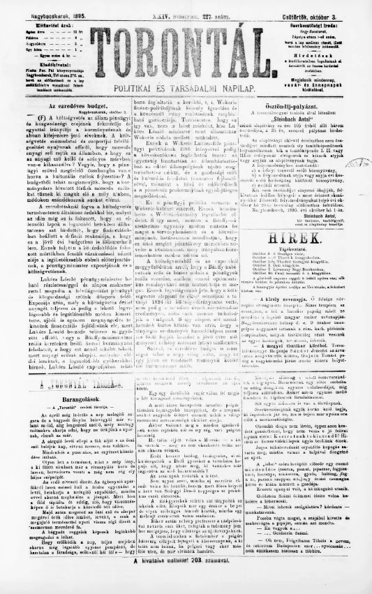 Torontál, 24. évf. 1895. október 3. 227. sz.