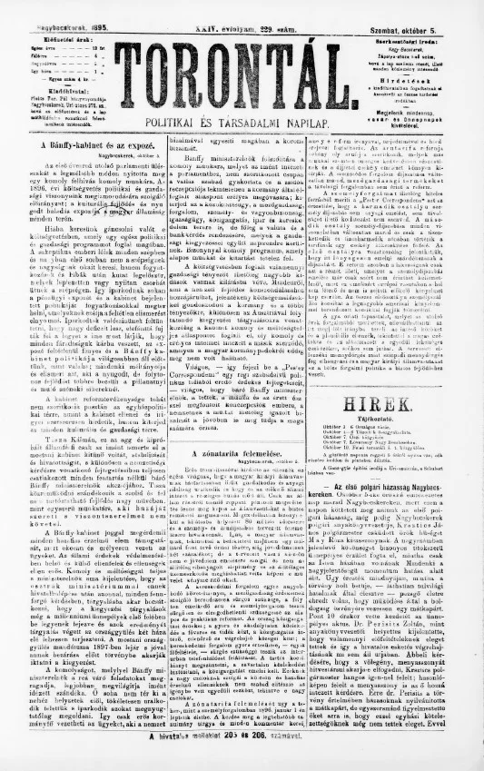 Torontál, 24. évf. 1895. október 5. 229. sz.
