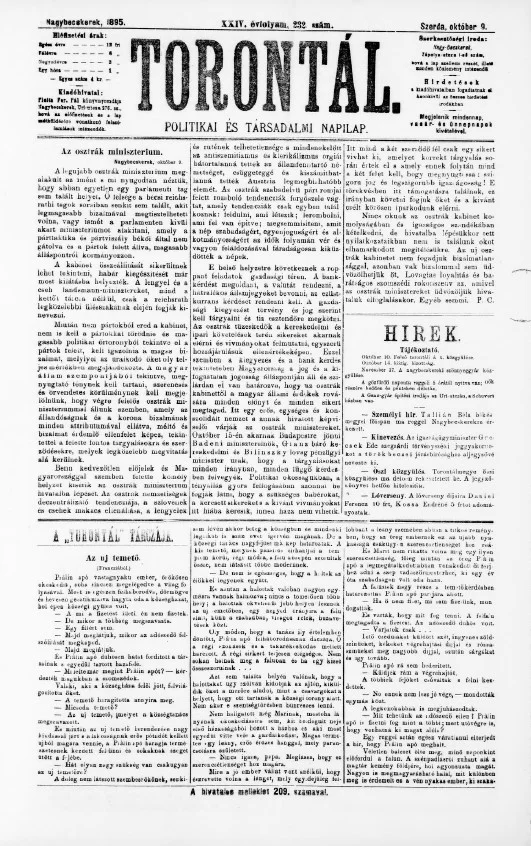 Torontál, 24. évf. 1895. október 9. 232. sz.