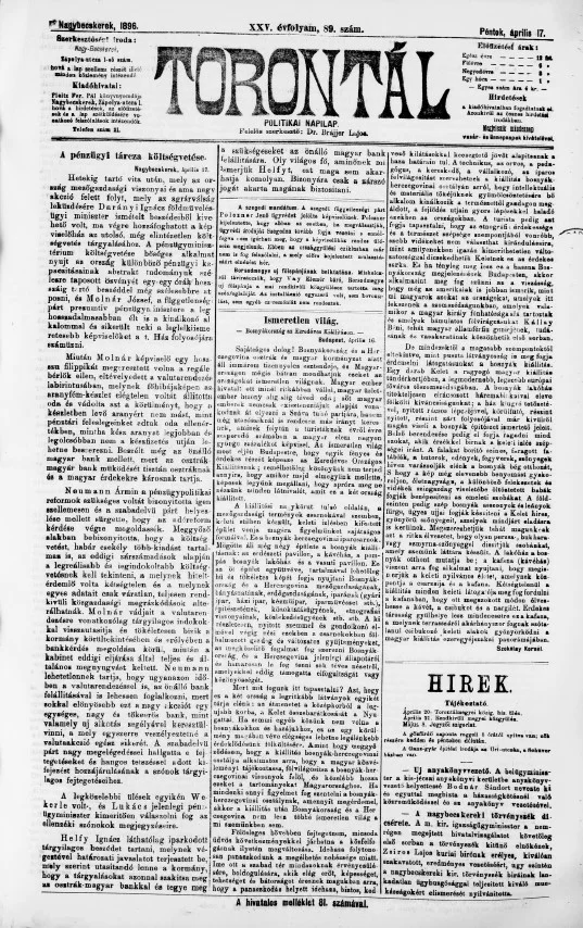 Torontál, 25. évf. 1896. április 17. 89. sz.