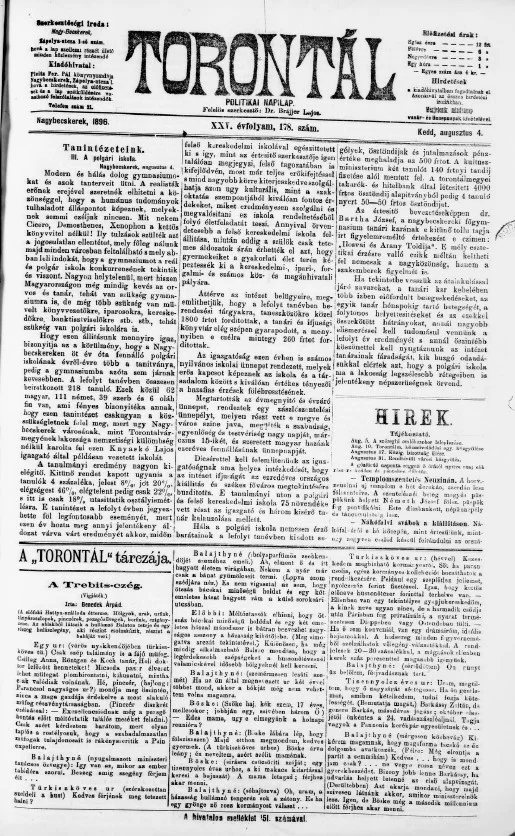 Torontál, 25. évf. 1896. augusztus 4. 178. sz.