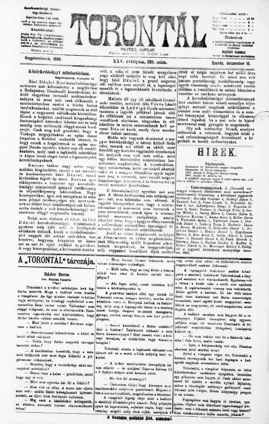 Torontál, 25. évf. 1896. december 16. 289. sz.