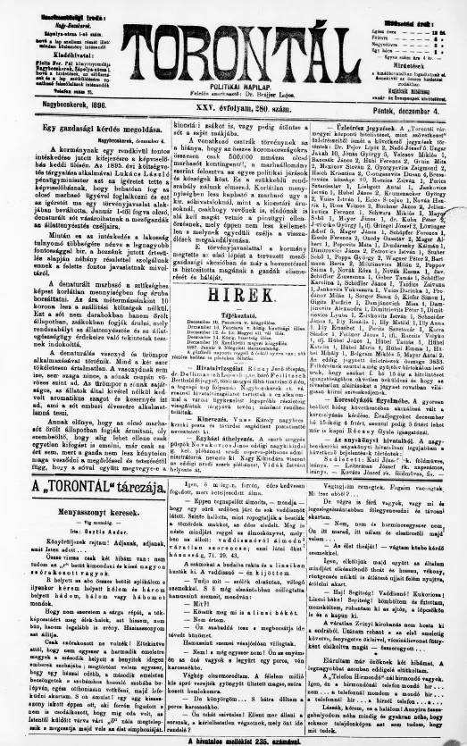Torontál, 25. évf. 1896. december 4. 280. sz.
