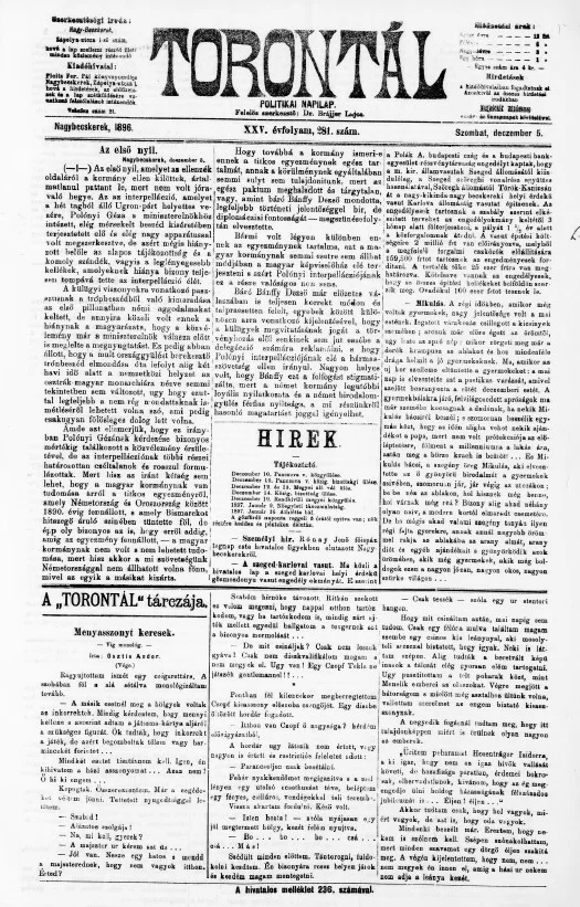 Torontál, 25. évf. 1896. december 5. 281. sz.