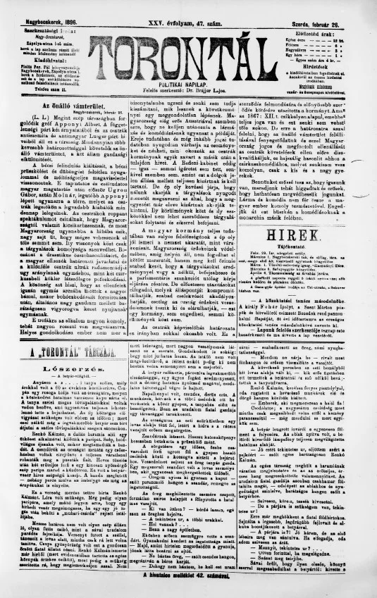 Torontál, 25. évf. 1896. február 26. 47. sz.