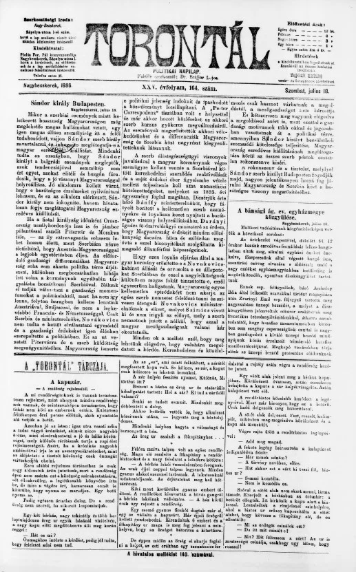Torontál, 25. évf. 1896. július 18. 164. sz.