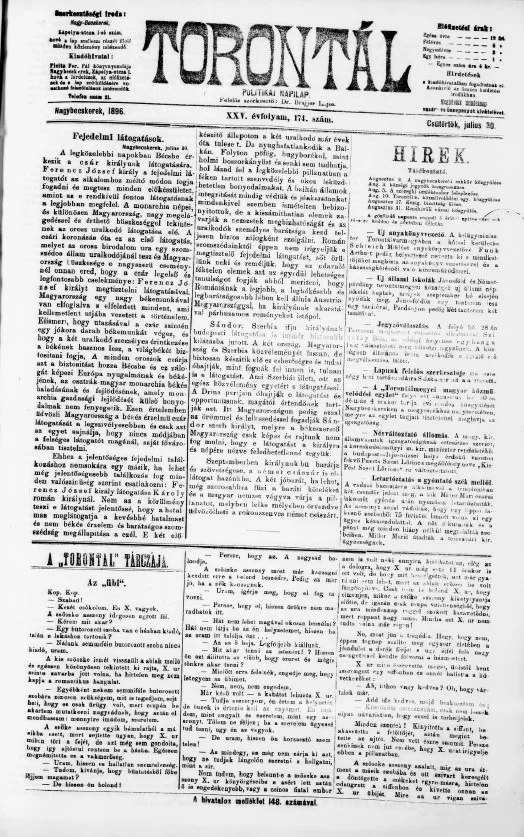 Torontál, 25. évf. 1896. július 30. 174. sz.