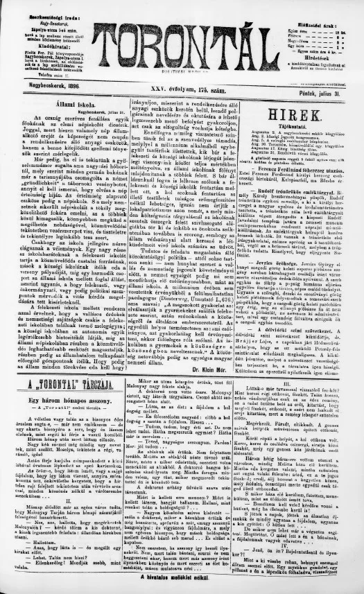 Torontál, 25. évf. 1896. július 31. 175. sz.