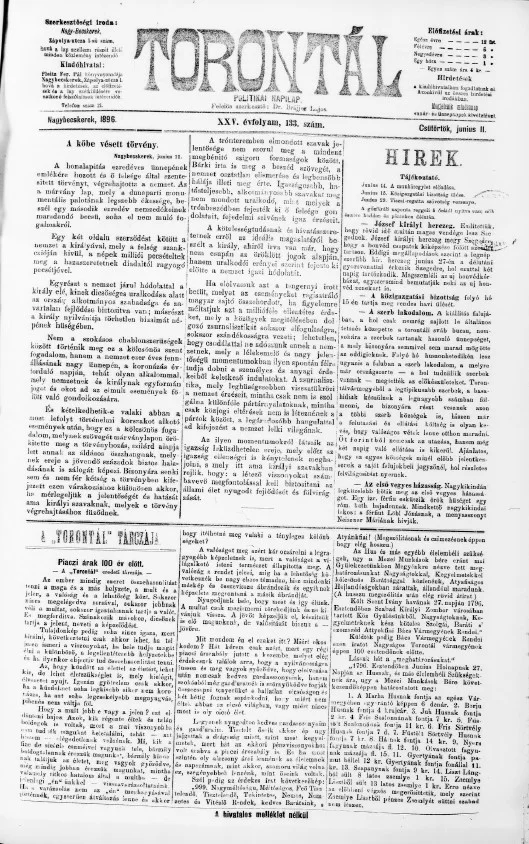 Torontál, 25. évf. 1896. június 11. 133. sz.