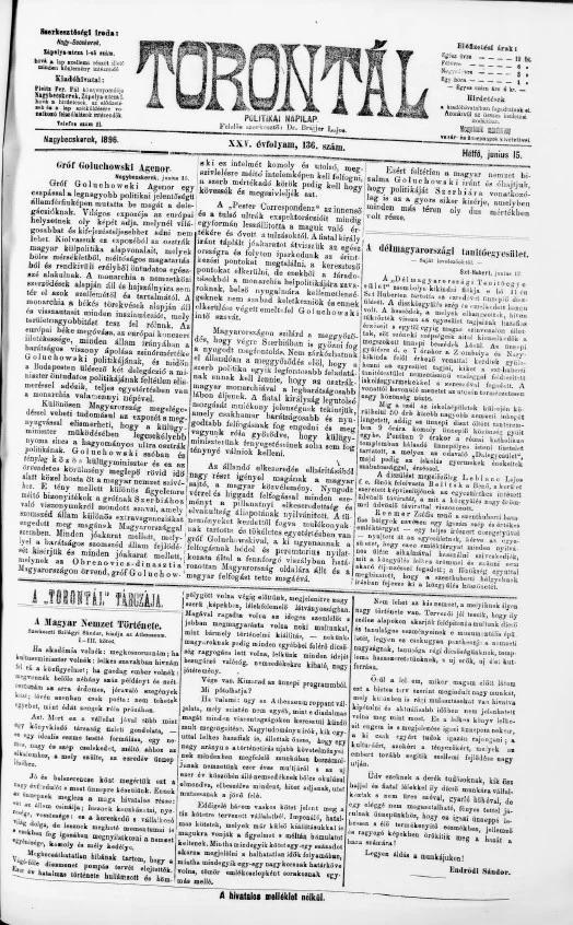 Torontál, 25. évf. 1896. június 15. 136. sz.