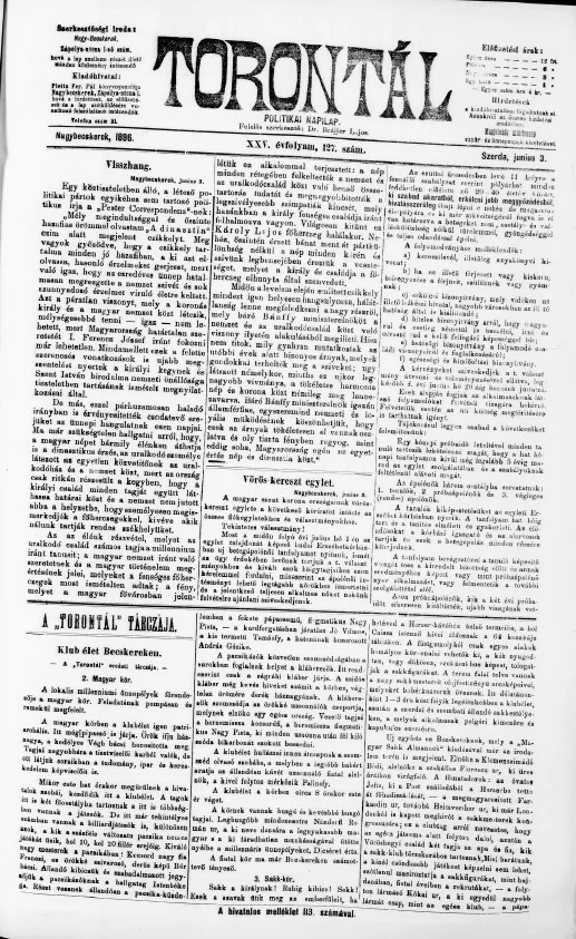 Torontál, 25. évf. 1896. június 3. 127. sz.