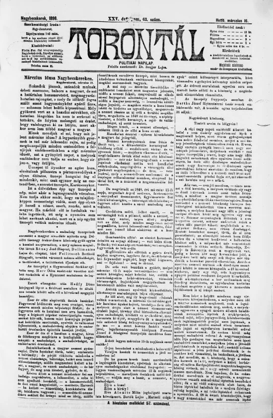 Torontál, 25. évf. 1896. március 16. 63. sz.